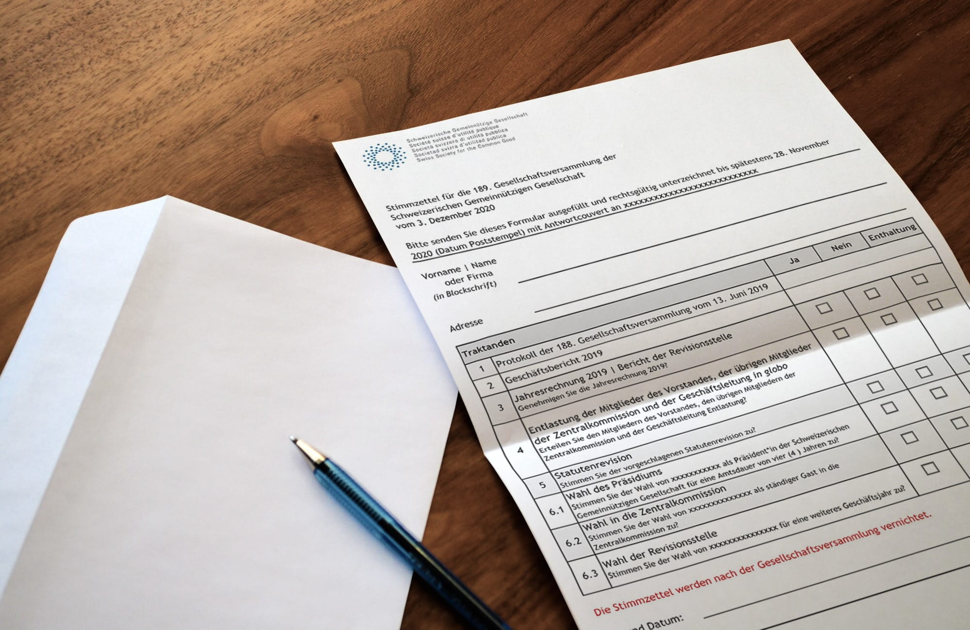 This year’s general Assembly of SSCG members will be held in writing. The Council and the Central Commission of the SSCG regret this decision. Not only because the GA offers the opportunity for many stimulating encounters, but also because this year, in addition to the usual items on the official agenda, two important topics are to be decided.