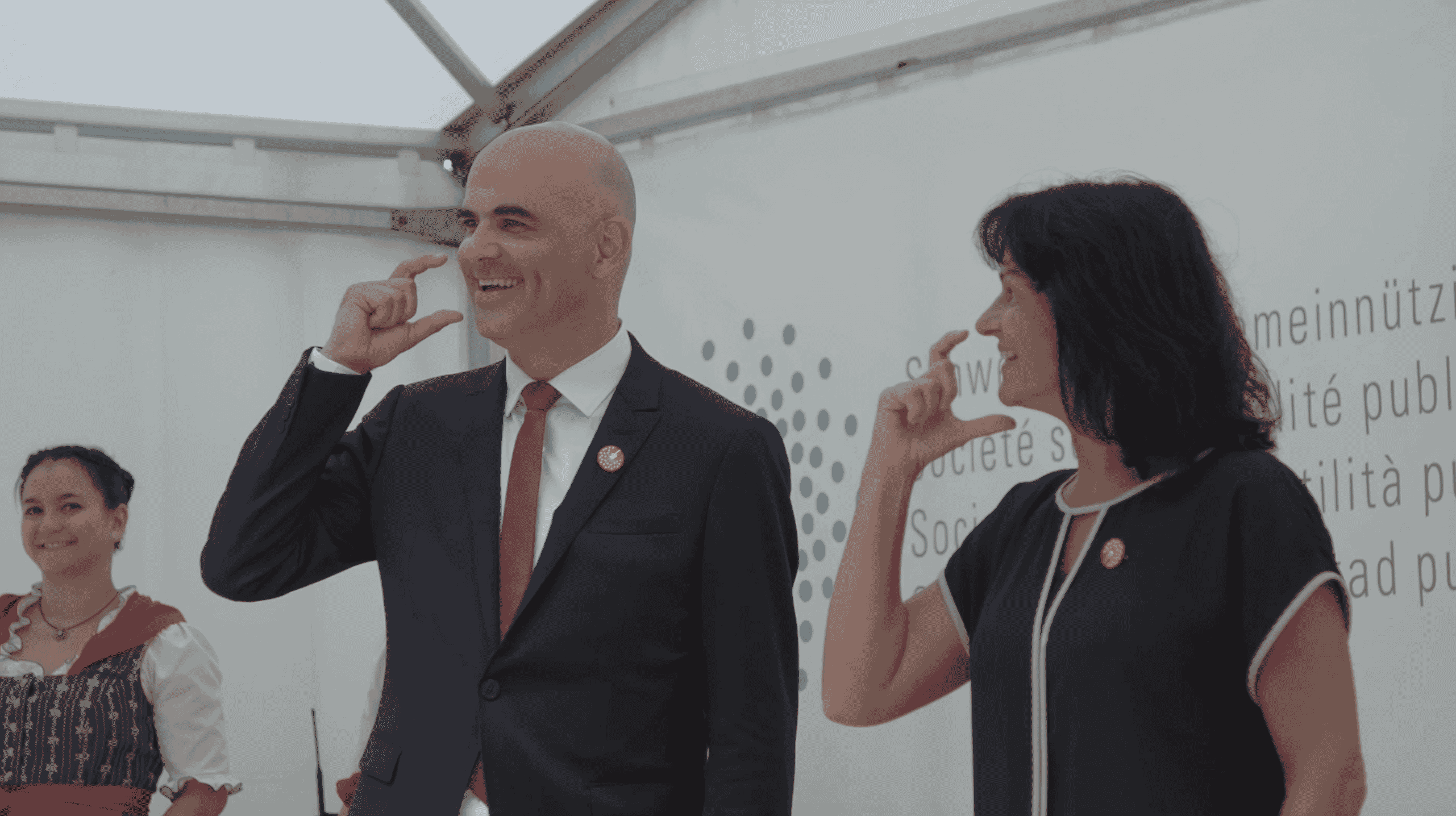 Outre le texte actuel de l’hymne national, les nouvelles paroles proposées, «Croix blanche sur fond rouge», ont été interprétées, même en langue des signes. MISS HELVETIA Barbara Klossner a accompagné les festivités de ses yodles, et la virtuose Lisa Stoll, des sons de son cor des Alpes. Les deux musiciennes ont présenté une surprise destinée particulièrement à Alain Berset, Fribourgeois: elles ont interprété «Le Ranz des Vaches» pour le remercier de son discours.
